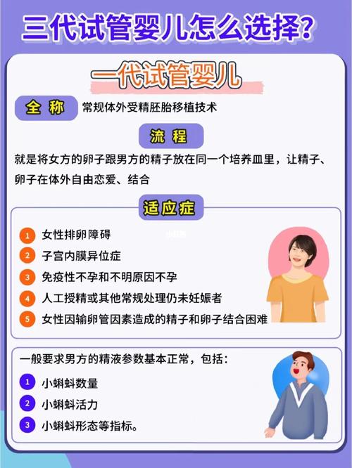 我想更深入地了解不同类型试管婴儿的适应症。我想知道第一代、第二代、第三代试管婴儿具体都适用于哪些情况?比如,什么样的不孕不育问题适合第一代试管婴儿?第二代在哪些病症上更有优势?第三代又是针对哪些特殊需求或者疾病才使用的呢?我还想知道有没有其他特殊类型的试管婴儿,它们的适应症又是什么?这些不同类型的选择对最终的成功率会有怎样的影响呢?我该如何根据自身情况判断适合哪种类型的试管婴儿呢?