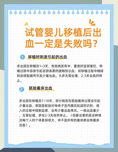 我做了试管婴儿移植,可还不到6天就出现了出血的情况,我特别担心,这正常吗?是移植失败了吗?出血是因为身体哪里出问题了呢?是胚胎着床不稳定,还是有其他严重的原因呀?这种情况会不会影响最终的妊娠结果呢? 应该采取什么措施来应对呢?