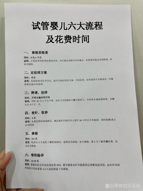 试管婴儿的流程包括多个阶段,每个阶段都需要严格的时间控制和细致的操作。以下是试管婴儿流程的详细解析。